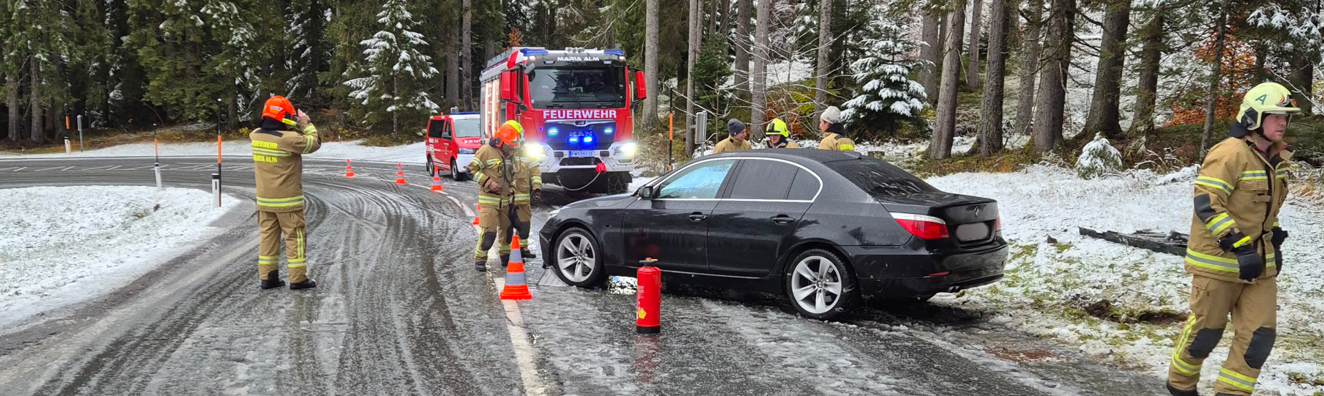 Die Feuerwehr Maria Alm wurde in der Nacht auf Samstag zu einem Verkehrsunfall mit eingeklemmten Personen am Filzensattel alarmiert.