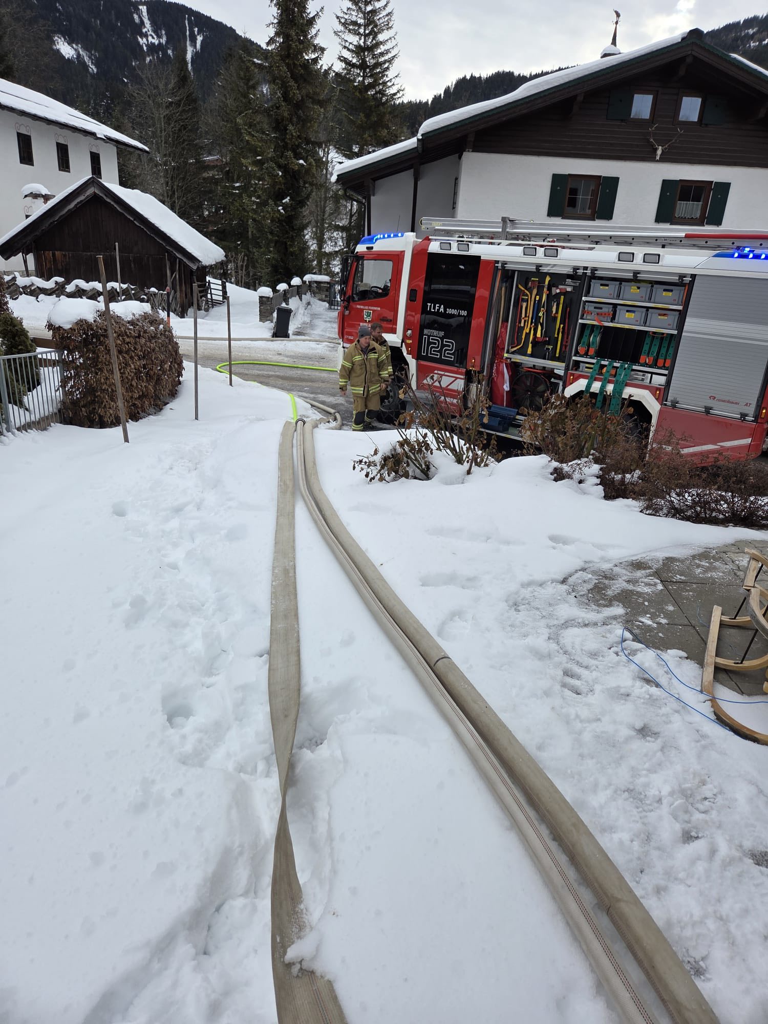 Die Feuerwehr Maria Alm wurde zu Auspumparbeiten in der Mittleren Sonnleiten in Hinterthal alarmiert. Durch einen Rohrbruch der Hauptwasserleitung stand ein Keller 50cm unter Wasser.