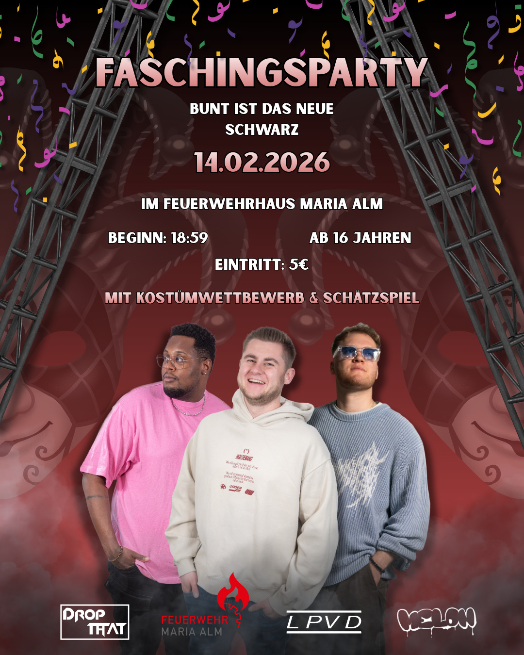 Schnappt euch eure besten Kostüme, bringt gute Laune mit und feiert mit uns einen unvergesslichen Faschingsabend!