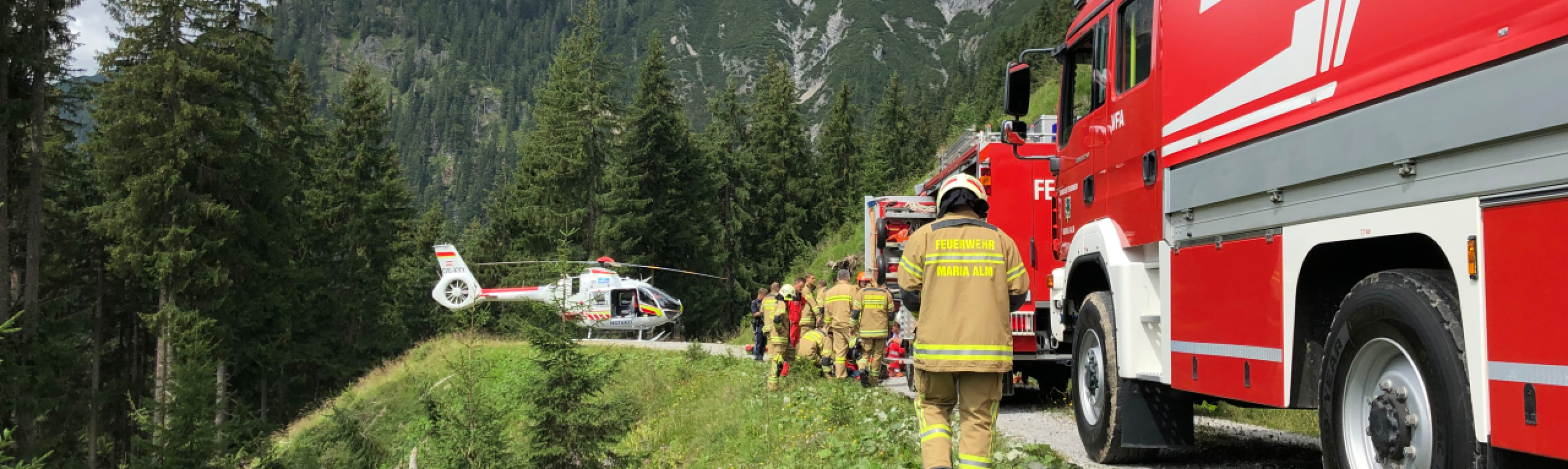 Am Abend des 21. Juli wurden die Feuerwehr Maria Alm Hauptwache und der Löschzug Hinterthal zu einem Fahrzeugabsturz mit eingeklemmter Person in Hinterthal alarmiert.
