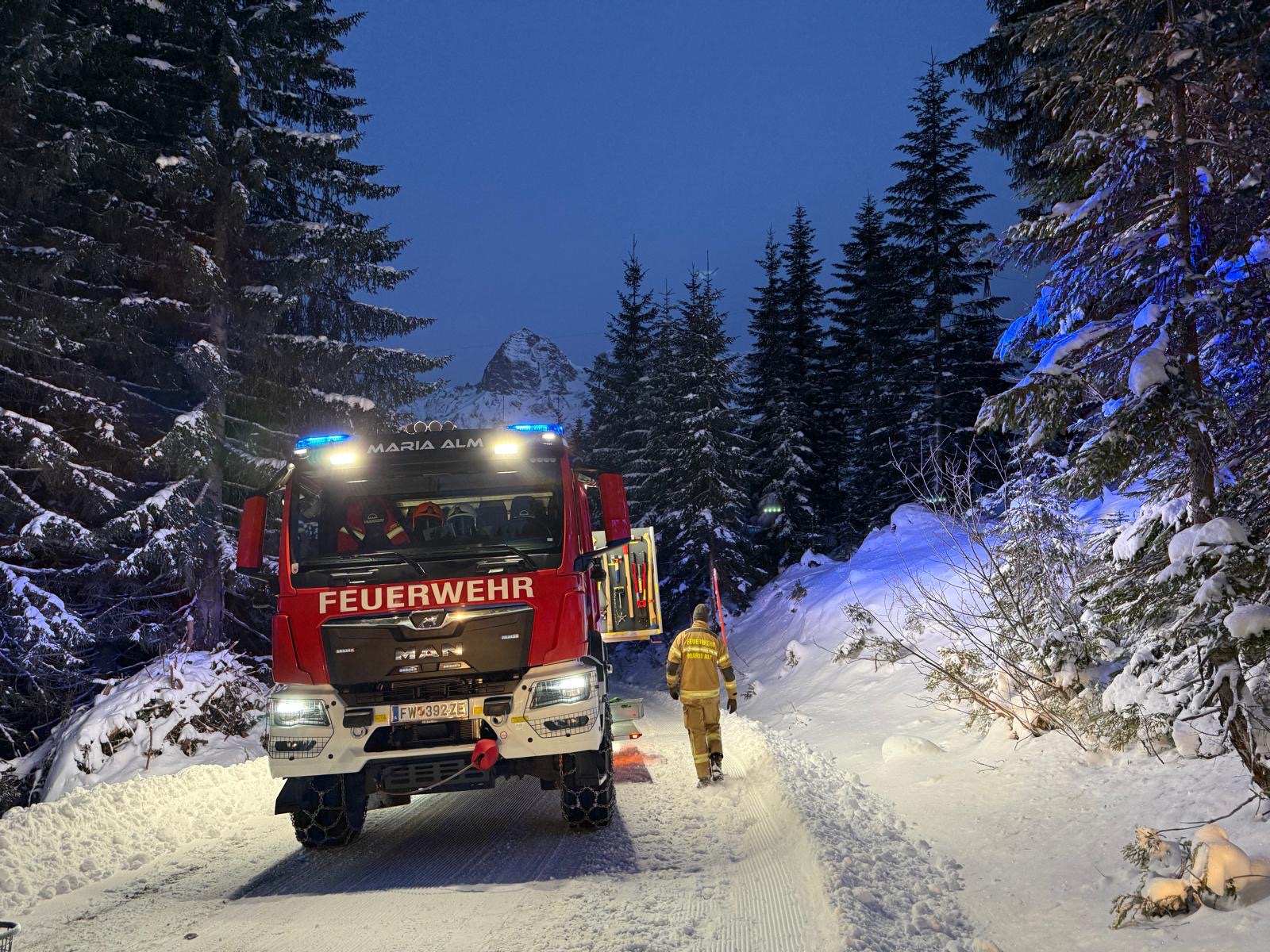 Am 12. Jänner wurden wir zur Bergung eines Klein-LKWs in Hinterthal alarmiert. Mithilfe einer Pistenraupe wurde der LKW zurück auf die Straße verbracht.