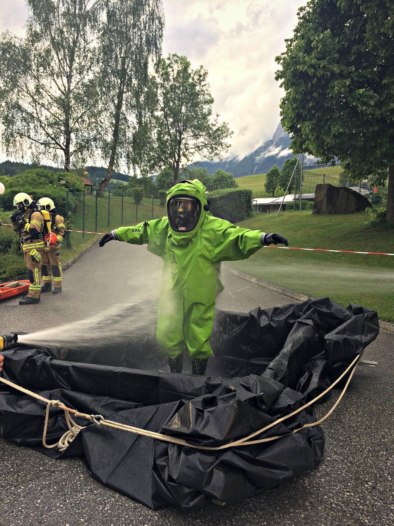 Am Mittwoch, den 07. Juni führte die FF Maria Alm eine Übung zum Thema Chlorgas im Schwimmbad Sommerstein durch. Angenommen wurde ein Chlorgasaustritt mit 2 vermissten Personen. Nach Ankunft der ersten Einsatzkräfte wurde sofort ein Atemschutztrupp zur Menschenrettung der ersten Person ins Schwimmbad geschickt. Gleichzeitig rüstete sich ein zweiter Trupp mit Schutzstufe 3 aus, um die vermisste Person aus dem Keller zu retten und Gullydeckel provisorisch abzudichten.